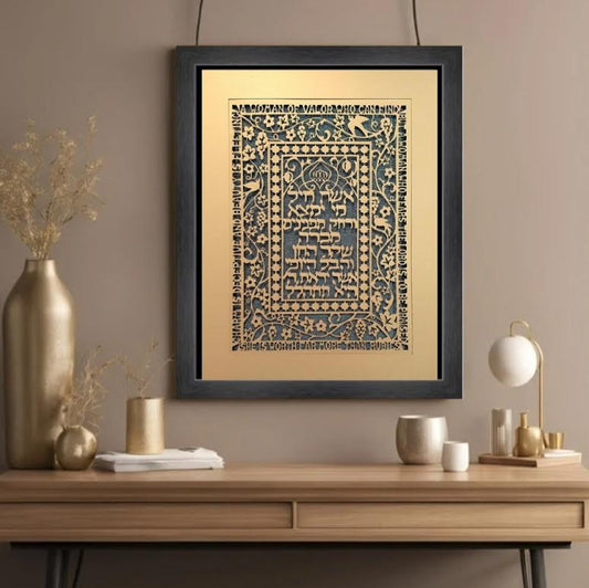 Grace grew up in England, and after realizing her first dream...to live in Israel, is now enjoying a second childhood dream...to be an artist. In 2010, she began to develop her love of the traditional Jewish art of papercutting. Her designs are based on Hebrew scripture, and incorporate both Hebrew and English into the art, as well as Israeli motifs such as pomegranates, palm trees, Middle Eastern architecture, and menorahs.